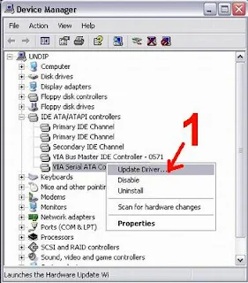 3. Di situ terlihat primary, secondary, kemudian jenis chipset mainboard anda, biasanya SIS, Intel, VIA, dll. Dan driver chipset inilah yg perlu anda rubah menjadi driver standart bawaan windows. Jika ada 2 driver chipset yang terdeteksi, maka anda harus mengganti keduanya dengan driver standart bawaan windows.